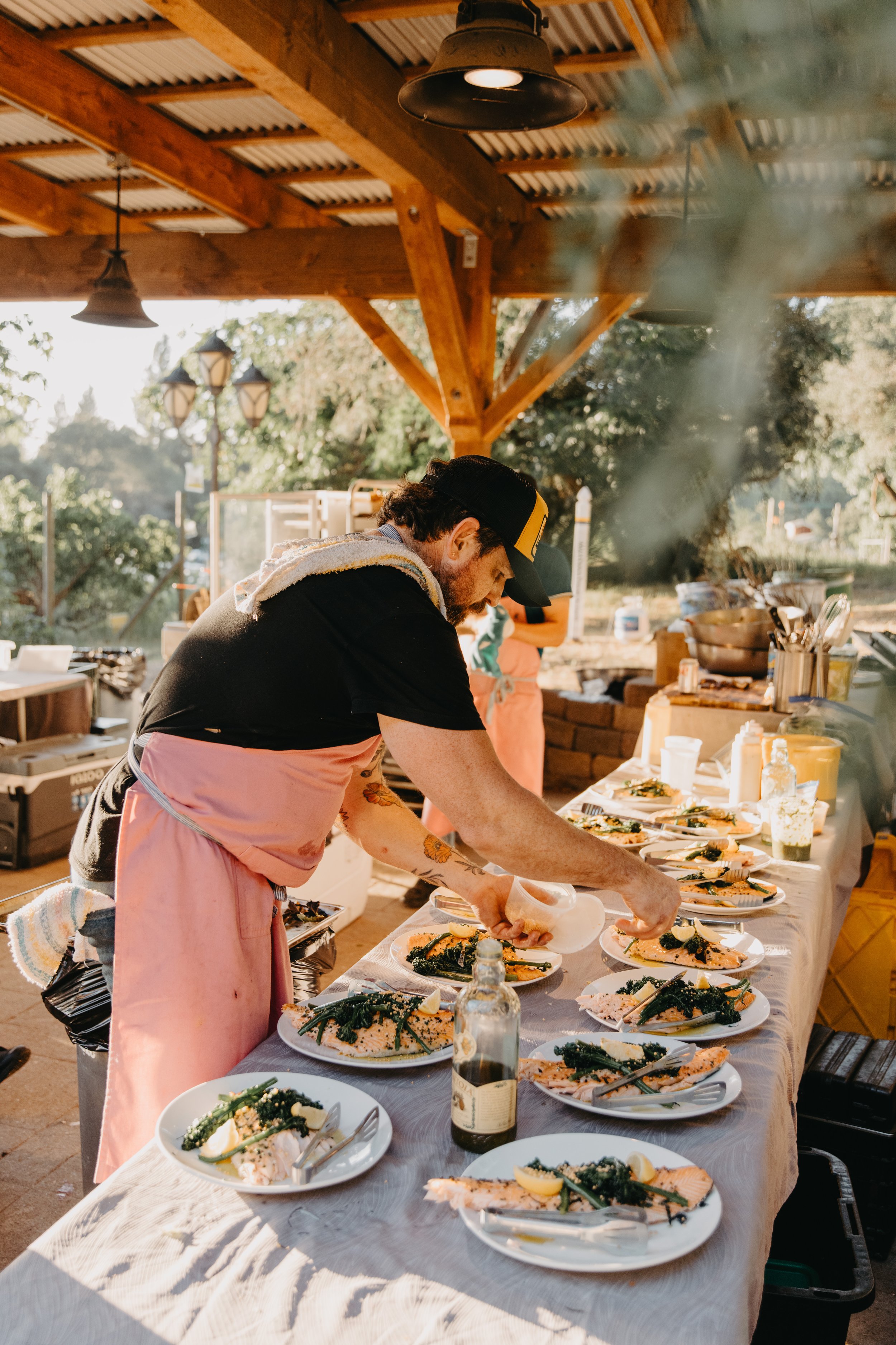 Farm-to-Table Dinner: Attendees gather in the Grove to enjoy a farm-to-table dinner curated and prepared by Chef Ryan Scott, in the Oak & Bay Laurel Grove, and the stars.